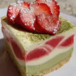 - Filling: Cream cheese provides that rich, creamy texture we all crave in cheesecake. Granulated sugar balances the tang, while an egg helps set the filling. Greek yogurt or sour cream brings extra creaminess, and pure vanilla extract adds warmth. Don’t forget the melted white chocolate for sweetness and the matcha powder for that gorgeous green hue. Finally, strawberry puree adds a lovely fruity twist.