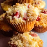 Delicious and fluffy strawberry muffins topped with a crumb topping, perfect for breakfast or a snack.