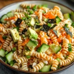 A delightful fusion of sushi flavors in a refreshing pasta salad, perfect for light meals or potlucks.