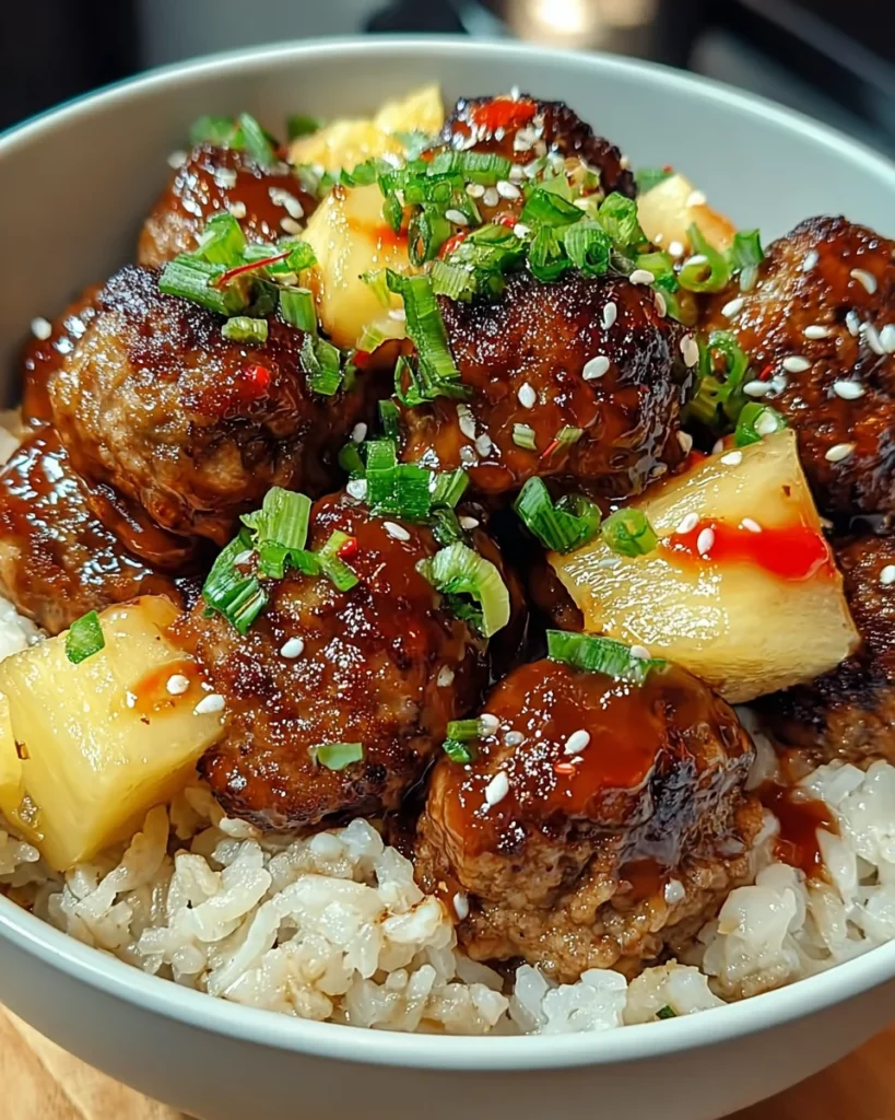 Introduction to Sweet And Spicy Hawaiian Meatball Bowls