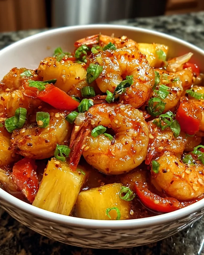 Sweet Chili Pineapple Shrimp is a delightful dish that combines succulent shrimp with the sweetness of pineapple and a kick from chili sauce.