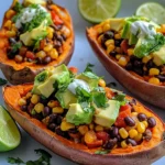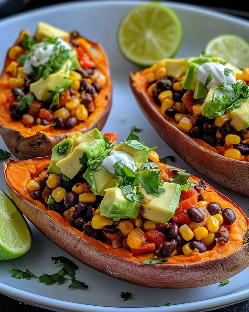- Garnish: Top each stuffed sweet potato with diced avocado and a dollop of Greek yogurt or sour cream. Sprinkle with fresh cilantro.