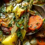 A delicious and sustainable soup made from vegetable scraps, packed with flavor and nourishment.