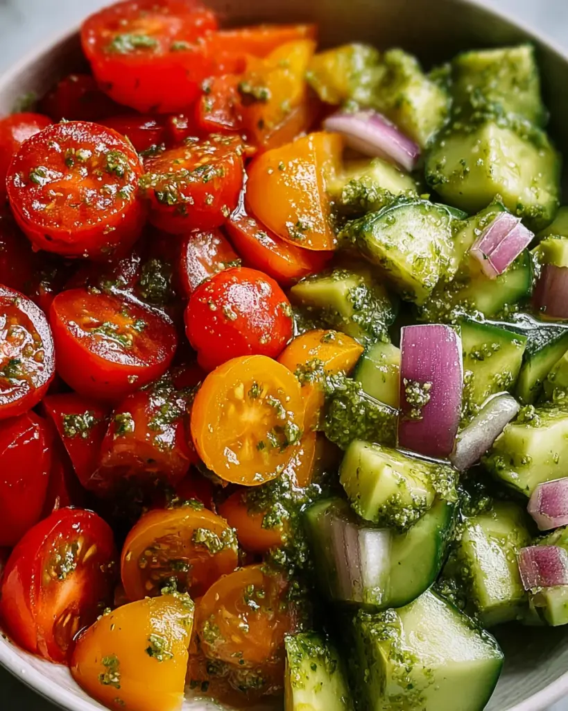 This Tomato Cucumber Avocado Salad is a refreshing and colorful dish that is perfect for any meal or as a light snack.