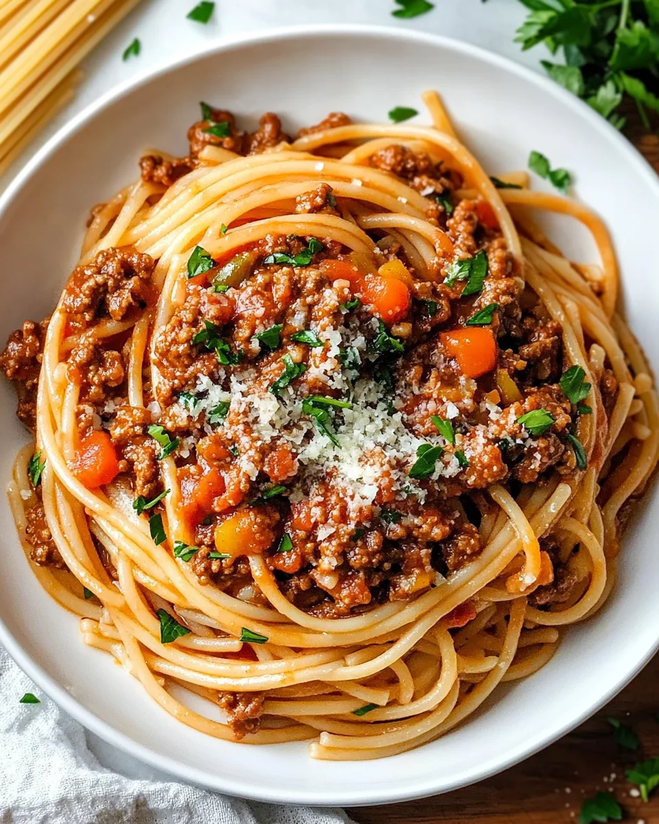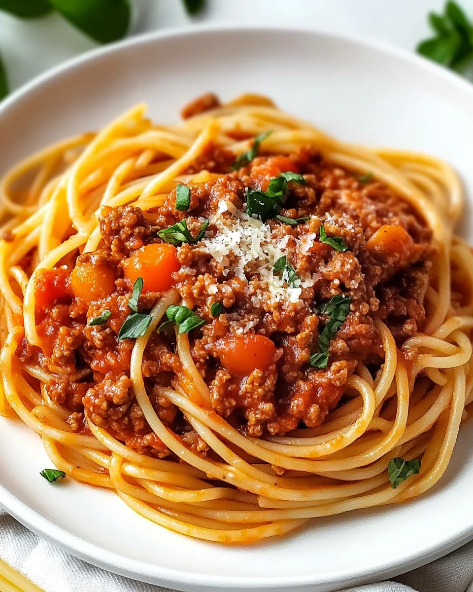 Once the spaghetti is cooked, it’s time to bring everything together. Toss the cooked spaghetti with the turkey bolognese sauce in the skillet. Add a splash of reserved pasta water to help the sauce cling to the noodles. Serve hot, garnished with fresh herbs and a sprinkle of grated Parmesan cheese if desired. This Turkey Bolognese Spaghetti is not just a meal; it’s a celebration of flavors that your family will adore!