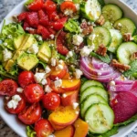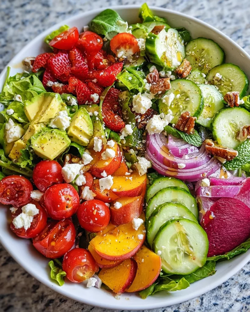 Finally, it’s time to bring the salad together! Just before serving, gently drizzle the dressing over the salad and toss everything lightly. This keeps the greens fresh and prevents them from wilting. Garnish with fresh basil or mint leaves for an aromatic finish. Your *Ultimate Summer Salad* is ready to be enjoyed!