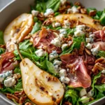 Now, grab a large salad bowl and add your mixed greens at the bottom. Layer on the warm, sautéed pears, crumbled feta, and your crispy prosciutto. Sprinkle those toasted pecans or walnuts on top. Each ingredient will shine through, creating a heavenly medley on your plate.
