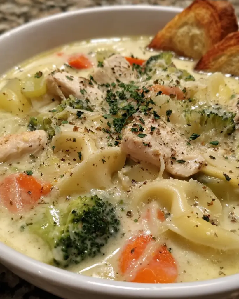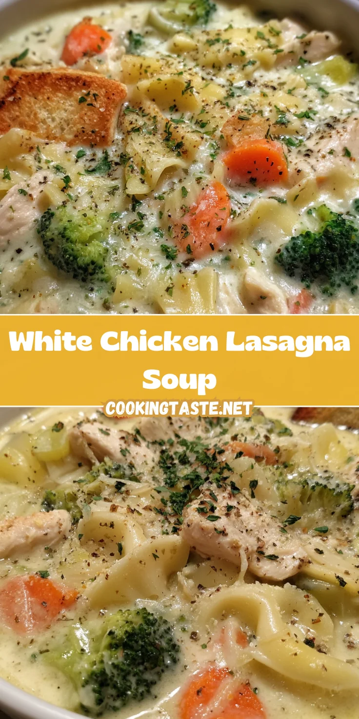 A comforting and creamy white chicken lasagna soup that combines all the classic flavors of lasagna in a warm and hearty bowl.